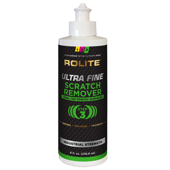 Refines, Polishes and Protects – this innovative ultra fine finish is specifically formulated to remove microfinishing scratch and swirl marks and provide a superior deep gloss finish for painted surfaces. Rolite Ultra Fine Scratch Remover is our deep gloss step utilizing the microfinishing high performance ‘smart’ technology polishing aggregates that diminish to one of the smallest particle sizes measurable, yielding the ultimate swirl free finished surface. Highly effective for all types of automotive clear-coat paints. Produces an extremely deep gloss finish. |