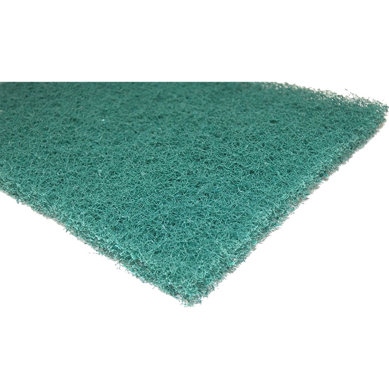 Open construction pad with tough fibers and abrasives make fast work of heavy duty cleaning jobs. Use in the kitchen to replace scrapers, steel wool and metal sponges. Typical applications include heavily baked-on food and food processing equipment. |