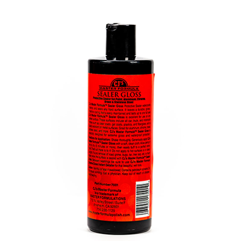 Master Formula Sealer Gloss Protective Sealer waterproofs, protects and seals any hard surface. It leaves a durable, glossy protective coating that's easily maintained and lasts up to one full year. Master Formula Sealer Gloss is excellent for use on any metal or painted surface. These surfaces include all car finishes including clear coasts, gel coasts, plastics fiber glass. They also include all metal surfaces such as aluminum, chrome, brass, stainless steel, gold, silver and more. 16oz. |