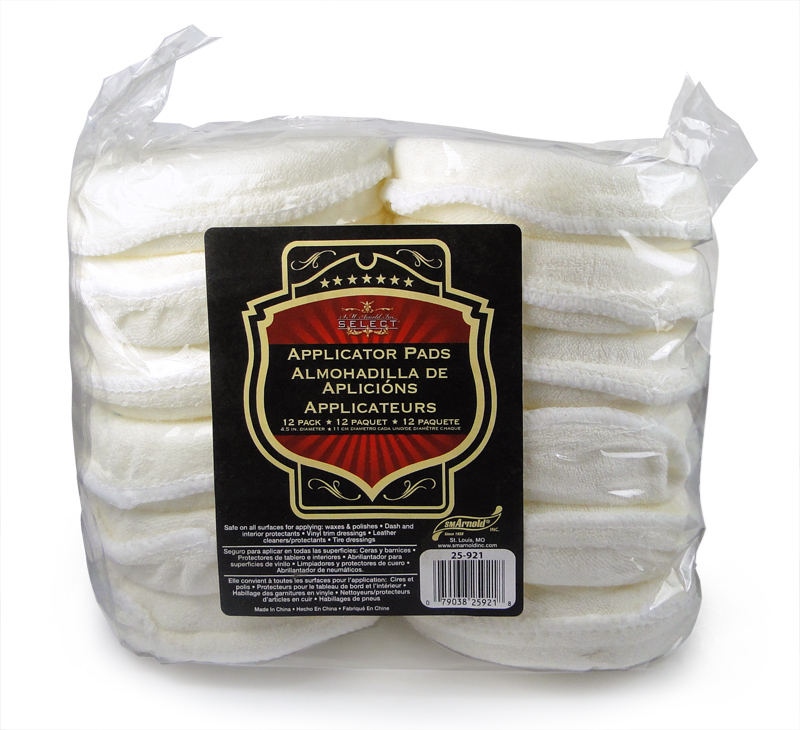 Durable foam applicator pad, encased in a soft terry knit, gently and evenly applies wax, polish and protectant safely to any surface. 12-Pack: 4.50” Diameter Each |
