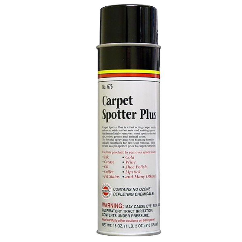 This extra-strength, water-based, universal spot & stain remover is a fast acting spotter reinforced with surfactants and wetting agents that immediately remove most spots. The forceful spray and non-foaming formula quickly penetrate for fast spot removal. Upright valve for fast, forceful penetration. Ideal as a pre-spotter prior to carpet extraction Use to remove spots caused by: Ink, grease, oil, coffee, pets, cola, shoe, polish, lipstick, etc. 20oz aerosol |
