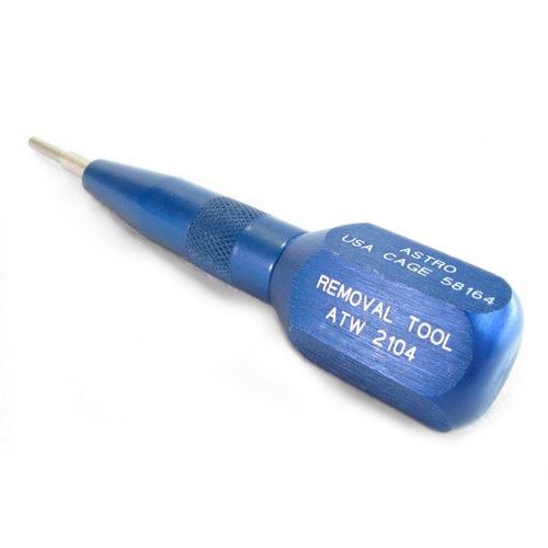 The ATW2104 is a removal tool designed for size 16 pin and socket contacts installed in Winchester Electronics MRAC Series front release rectangular connectors. |