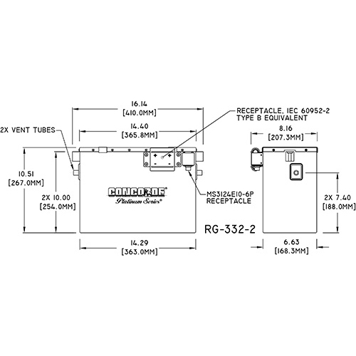 The RG-332-2 is a Concorde® Platinum Series® Aircraft Battery. The Platinum Series® is comprised of premium hand made AGM Aircraft Batteries with excess power for many applications. RG-332 is housed in a aluminum fire resistant container with lifting straps and is equiped with a IEC 60952-2 Type B conforming receptacle. Concorde recombinant gas (RG® Series) valve regulated lead acid (VRLA) batteries for engine starting, emergency / essential power, and standby power applications are constructed with cutting edge Absorbed Glass Mat (AGM) technology. Concorde VRLA-AGM batteries are known for quality and reliable performance in cold climates including superior engine starting performance and excellent charge acceptance. |