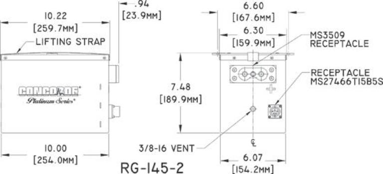 Concorde aerobatic RG® Series recombinant gas batteries are constructed with advanced sealed lead acid technology and unique features such as additional PolyGuard® separators around the plates to protect against shock and vibration, and larger than the industry standard intercell connections for optimal outrush and increased charge acceptance. The battery is housed within an aluminum container and cover. A hold down bar is integrated into the cover with a lifting strap fitted on the cover. Heater receptacle and vent hole are integrated into the front of the container. For an unheated model, see RG-145-1.