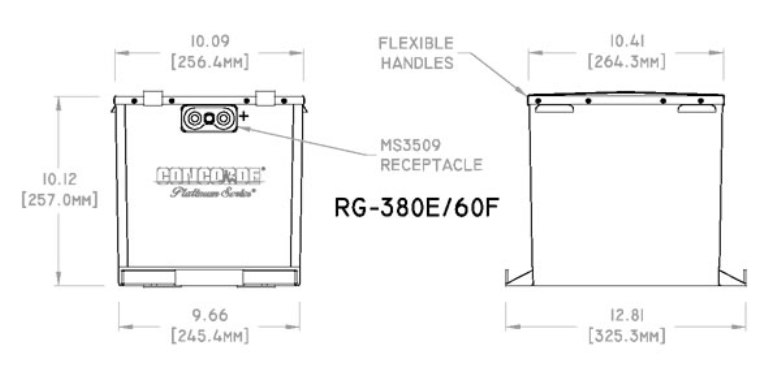 The RG-380E/60F is a Concorde Platinum Series Aircraft Battery. The Platinum Series is comprised of premium hand made AGM Aircraft Batteries with excess power for many applications. RGŪ Series batteries - Valve Regulated Lead Acid (VRLA).