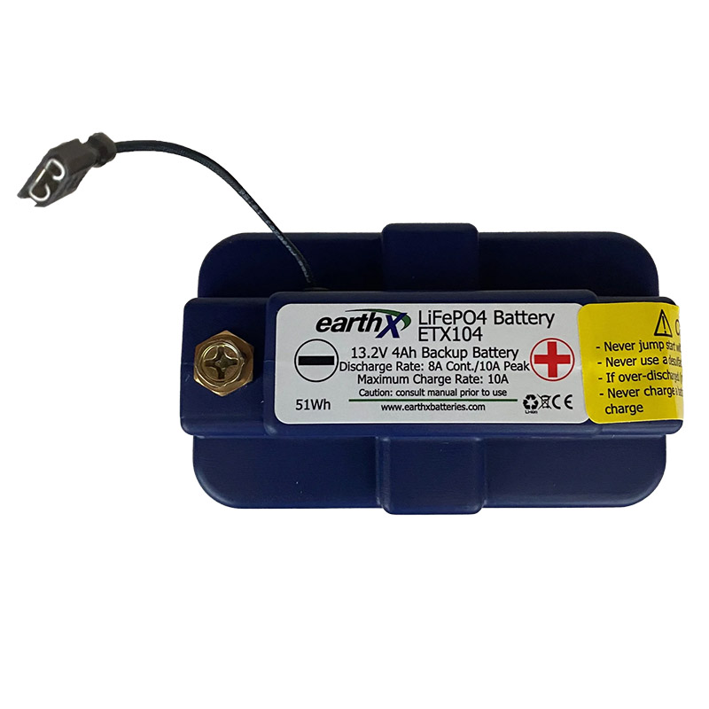The ETX104 is a lithium iron phosphate (LiFePO4) 4Ah back up battery. It is designed to provide backup power to your critical loads (essential power bus or emergency loads). This can be used with any size charging system due to the built in current limiting to protect it from high discharge/charge current. This is not a starter battery. The ETX104 is fully protected by an integrated battery management system (BMS) that protects the cell’s from over discharge, over charge, short circuit, temperature, plus cell balancing to ensure charge levels are equal. Additionally, the ETX-Hundred Series batteries have redundant electronic circuits and fault indication. The fault indicator can be connected into your EFIS or wired to a 12volt LED light on your control panel to alert you to the state of charge and state of health of the battery. (Please see manual for details) |