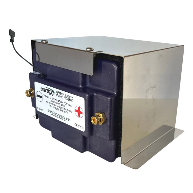The EarthX thermal battery box is designed to protect the battery from periods of high temperature (up to 1 hour). Additionally, this stainless-steel box has a mirror finish to minimize the effect of radiant heat, and it has a high-performance insulating foam layer between the box and battery to reduce effect of convection heat. Though, the weight is only .68Kg or 1 Lb. 8oz. All batteries have optimal temperature ranges for use in operation. Whereas, the ETX-Hundred series is rated for 140 deg F (60 deg C) or less for optimal longevity and performance of the battery. Typical lead acid batteries are rated to 113 deg F or 45 deg C. Thermal battery box to protect from radiated or convection heat. This battery box is designed to be compatible with our existing “U” case battery models; ETX1600, ETX900-24, ETX680-24-VNT. ![]() The “Radiant and Convection” graph shows the internal cell temperature with an extreme test example. During this test, the battery was placed in an environment chamber with temperatures of 185 Deg F (85 deg C). It was simulated 1000 Deg F (538 deg C) exhaust pipe 6 inches from the front of the battery. Thereafter, was a 3.5X improvement in the time to heat up the battery cells to the high operating limit. In less extreme temperatures, the improvement can be 4X. ![]() The “Convection” graph shows the battery (not cell) temperature rise with a test environment of 185 Deg F (85 deg C). There was a 5.3X improvement in the time to heat up the battery. |