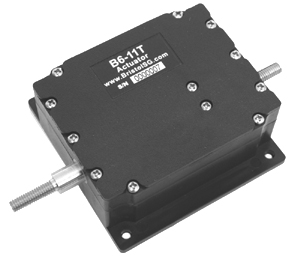 The B6 actuator is a small, powerful 12-14 Volt DC actuator featuring internal travel limiting switches. When activated, the actuator will continue to run until the power is turned off or until it automatically shuts off at the end of its travel. It can also be stopped in any position by switching off the power. Since the thrust is generated by means of a jackscrew, the output shaft will lock in any position when the power is off. Voltage polarity determines the direction of travel. The B6 actuator shares the same footprint as the T2 / T3 Servo. The B6-7C and B6-11C model actuators have a brass output shaft designed to work with the C2 series clevis. The B6-7T and B6-11T model actuators have a brass, 10/32 threaded stud output shaft. |