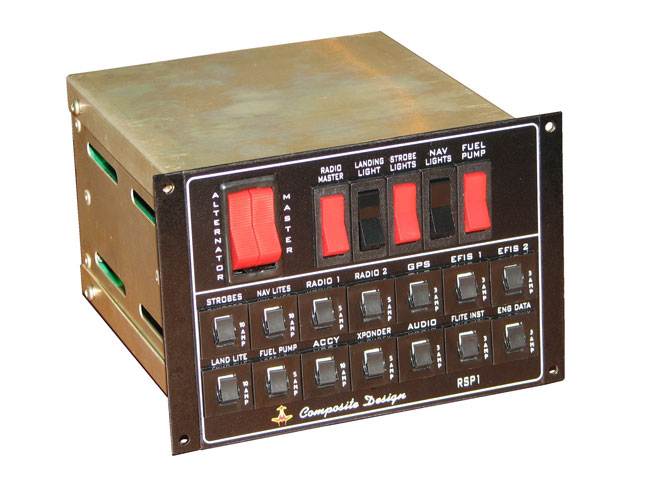 The Radio Stack Power Panel is designed to fit neatly in the 6.25" radio stack format. It is well suited for LSA and light aircraft applications, offering a new degree of flexibility in modern "Glass Panel" equipped aircraft. The power bus is split into three segments including the Main Bus, Radio Bus and the Essential Bus. The Radio Bus is switched and filtered. The Essential Bus can be wired directly to the Main Bus or easily connected to a back up system such as the Composite Design Power Guard. This allows dependable, constant power to critical flight and engine instruments. |
