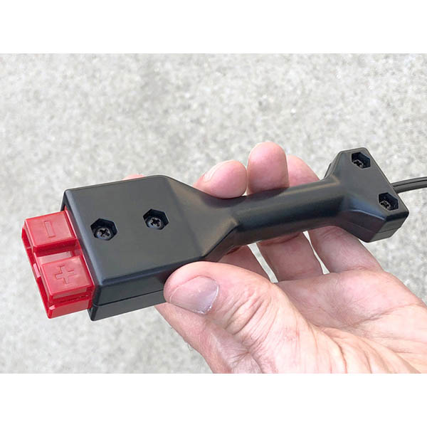 The Model 670-420 SB50 Handle Kit encases the common Anderson SB50 power plug to provide a rugged hand grip for temporary DC power applications such as battery charging. Its ABS plastic case features internal wiring guides for strain relief.