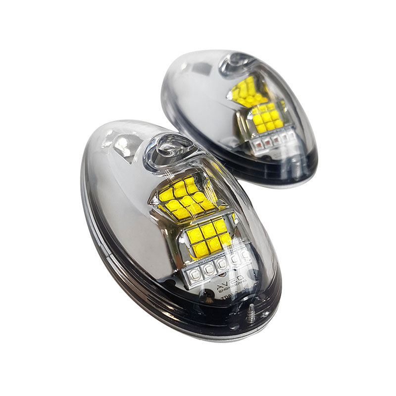 The Aveo Ultra Embedded Galactica LED Lights are sold as a pair, one red and one green.