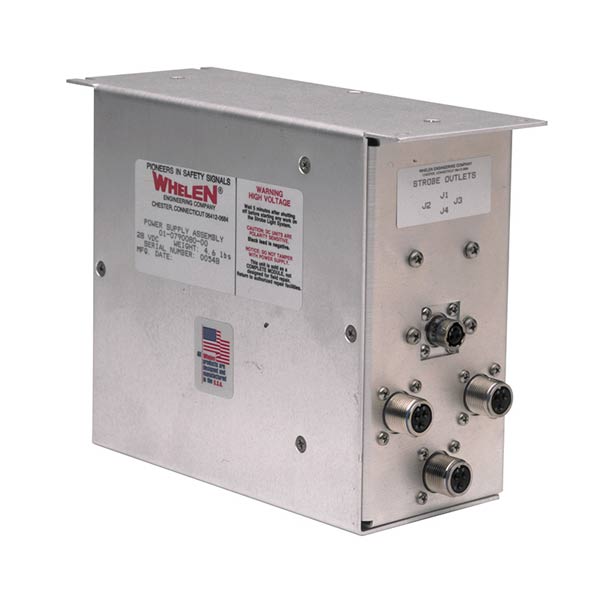 Model 9008000 produces 24 joules of energy, SingleFlash, to three light assemblies simultaneously. This power supply operates at 28 VDC. It is utilized on the Beechjet. Beech P/N 71-651-057-00. |