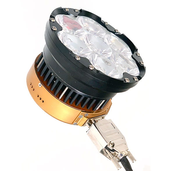 The Landing light "-7UN" version offers a circular and uniformly round beam pattern so there is no "up" orientation to follow for the Landing version "-7UN" lights. Because of this the power connector can be oriented (rotated) in any position (360 degrees) desired for clearance or other reasons / preferences.
