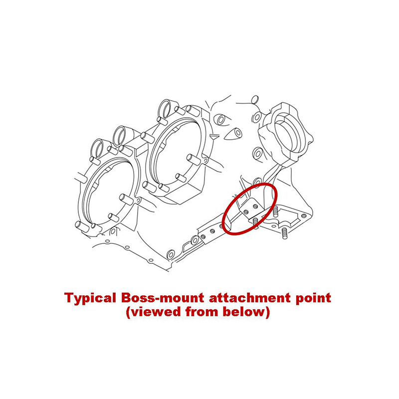 The boss mount has a "boss" cast onto the crankcase. The case mount has a bracket that mounts to the spine bolts.