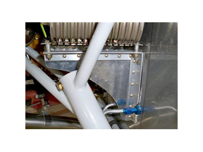 Airflow Systems oil cooler brackets and mounting hardware kits offer the homebuilder a quick and easy solution for firewall mounted oil cooler installations. A variety of mounting angles cover most applications at a cost that is often little more than the cost of material for a builder made bracket. The generous radiuses resist cracking. Delivered without holes but including an oil cooler mounting hole template the brackets may be tailored to individual installations.