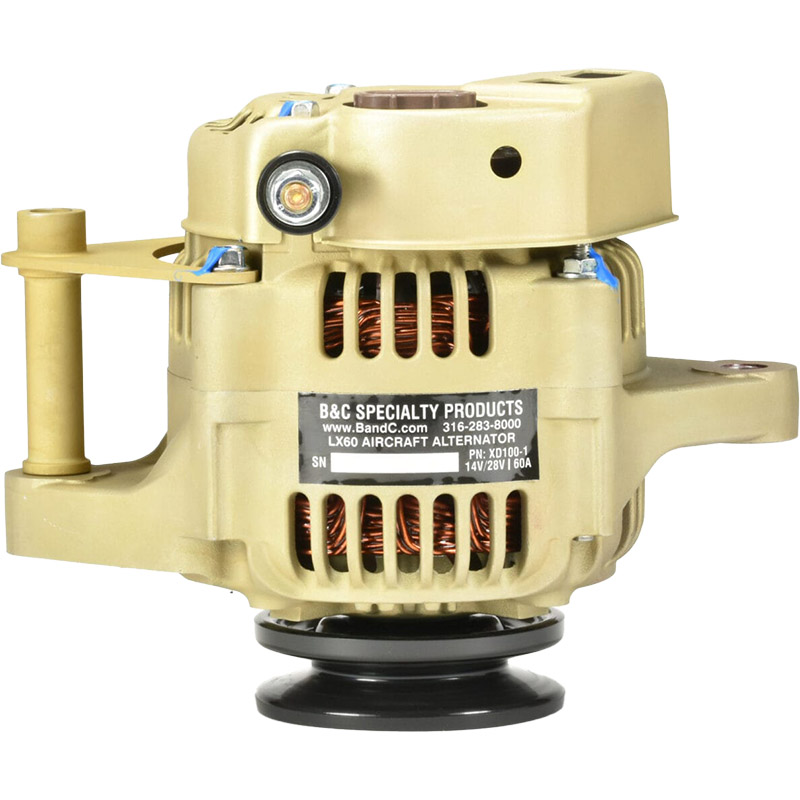 An unshakable commitment to excellence and an unchanging focus on providing genuine value — those are the roots of our new LX60 Alternator. Built on the reliability of our acclaimed L-60 and the superior efficiency of our BC460-H, the LX60 combines robust 60A output and unmatched durability in a compact 7.1 lb. frame. With the features that you would expect from a B&C – heavy-duty sealed ball bearings, two internal cooling fans, and a precision dynamically-balanced rotor – the LX60 is produced to exacting tolerances, with three attachment points for stable mounting, and configured for external aircraft-style alternator control with over-voltage protection and low-voltage warning. Fully compatible with our LR3D-14 or LS1B Controllers – for 14V systems, use the LR3D-14 (or equal); for 28V systems, use the LS1B (only). Each replacement LX60 includes a pre-wired field connector assembly.