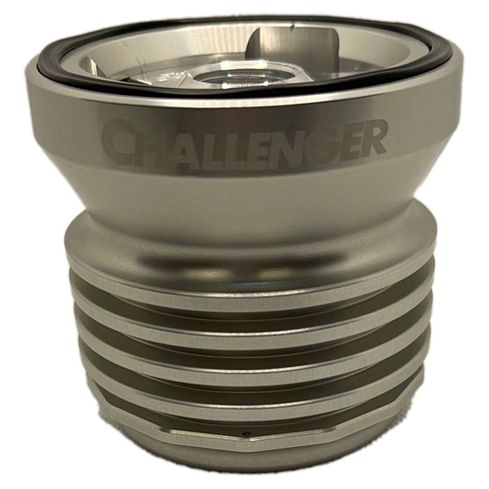 The Challenger CP9124-C replaces the Rotax 8245-706. This filter includes an internal check valve with the same bypass pressure rating as the Rotax OEM filter. The filter element is made from medical grade, type 304 stainless steel micronic filter cloth providing unmatched protection against oil contamination and resultant engine damage. A rare earth magnet is installed in the top of the element for magnetic pre-filtering of the oil. The unique twist lock design allows for easy disassembly, inspection and cleaning. The quad-ring gasket doubles the seal between the filter and the engine . The filter housing is carved out of a solid piece of 6061 T6 billet aluminum with cooling fins, which not only looks good but aids in dissipating heat. |