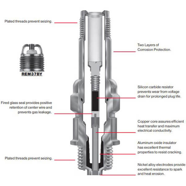 Champion spark plugs have great quality and service life. REM 37 is about .5 shorter than rem 40 and helps solve a clearance problem.