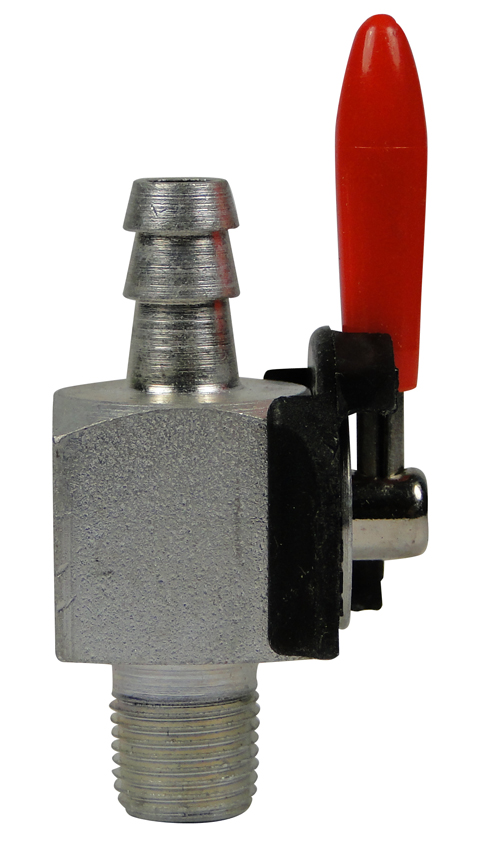 Threaded Tank Valve. Tank Valve threads into bottom of tank. 1/8' male pipe threads. Straight thru design accepts any 1/4' id fuel line. 1/4 turn shuts down fuel flow.