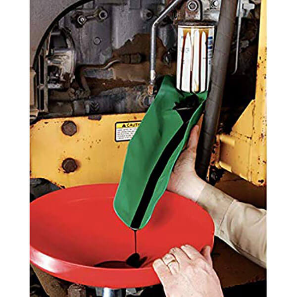The General Purpose size (14.5″ x 6.5″) is great for draining oil, gasoline and other fluids from automobiles, trucks, motorcycles, ATVs, industrial equipment, lawn equipment and fork lifts. In addition to draining and filling fluids, FORM-A-FUNNEL can be used in a wide variety of applications including diverting water dripping from a pipe, filling bird feeders and filling fertilizer containers. The potential uses are endless! Thick, pliable nitrile rubber coating completely encases a thin, bendable layer of aluminum alloy that resists wear. Reshape and reuse it over and over. Edges can be molded around filters or drains to create a leak-proof seal. Keeps oil off of engines, frames and surrounding parts. Highly compatible with common automotive fluids. Works in temperatures from -30F° to 425F°. |