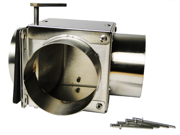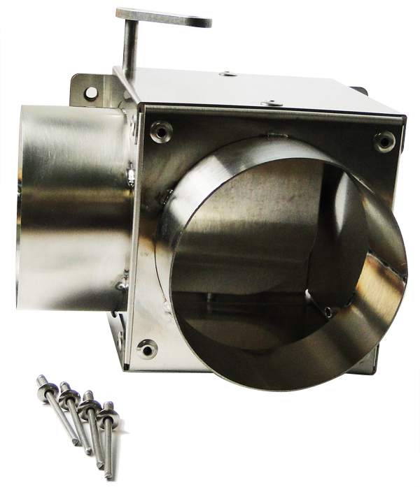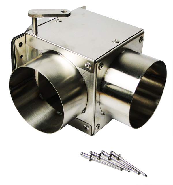 This box is identical to the deluxe stainless steel cabin heat box, except that the inlet and outlet are 2 ½" OD so that this box can be used when the builder wants to use 2 ½" scat tubing throughout the project. (This box was used on the Cirrus SR20 certified aircraft. The SR20 now uses the DL-008 box listed below.) Weight is 6.3 ounces. |