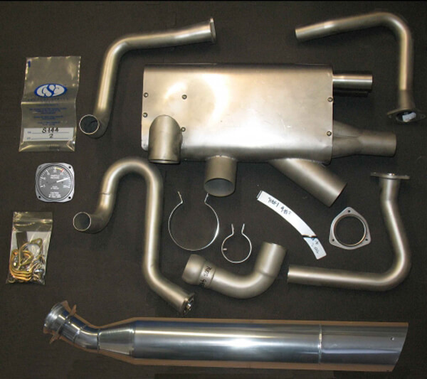 R22 Tuned Exhaust Kit for R22, R22 Alpha, R22 Mariner, R22 Beta with 320-B2C engine and large oil cooler. FAA approved by STC. This system is delivered to you as a complete replacement of your factory exhaust system from the cylinders on down to the muffler (which is located in the tailpipe). It includes everything needed for installation, including a replacement Manifold Pressure Gage with Beta II limitations marked on it. The exhaust system features all new carburetor heat and cabin heating that uses your existing connections and all necessary exhaust hardware. Estimated installation time is 2-3 hours. How can just changing the exhaust give you a tremendous boost in power and efficiency? The answer is simple. Installing a Power Flow tuned exhaust provides the same performance benefits as upgrading to a Beta II, at a fraction of the cost. It is true bolt-on horsepower for your O-320 powered Robinson R22 Alpha or Beta. You simply remove your old, restrictive factory exhaust system and bolt-on a Power Flow for instant results you can see, feel, and hear. You then operate your helicopter to the Beta II engine performance limitations. The same technology that has been used in race cars, motorcycles, and over 4,300 certified aircraft currently equipped with Power Flow’s Tuned Exhaust System is now available for your O-320 powered R22 helicopter. Would you like to cruise up to 8 knots faster at the same manifold pressure? Or how about 200 – 300 foot per minute increase in climb? You can even lower fuel burn by up to 15% at your current airspeed. Unlike the factory exhaust, the Power Flow exhaust system does not require mandatory replacement at 2200 hours. This Tuned Exhaust System is designed to use the exhaust gases from each cylinder to help empty the other cylinders, rather than having those exhaust pulses interfere with each other. The factory exhaust system is a very simple design with two exhaust headers entering a central muffler chamber from each side with no separation of the exhaust pulses. The pulses enter the chamber with no particular path to follow. Some leave through the tailpipe, some stay in the muffler (creating back pressure) and some even go back up the other header pipes causing further back pressure. The system specifically times each exhaust pulse to create a low pressure (suction) at the cylinder’s exhaust valve when the valve is ready to open. This empties the cylinder more completely allowing for more power to be generated. The exhaust gases then exit the tailpipe without interference from the other cylinders. |
