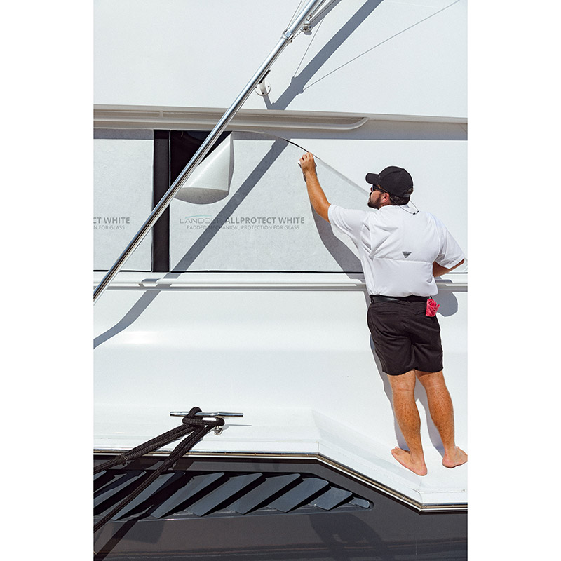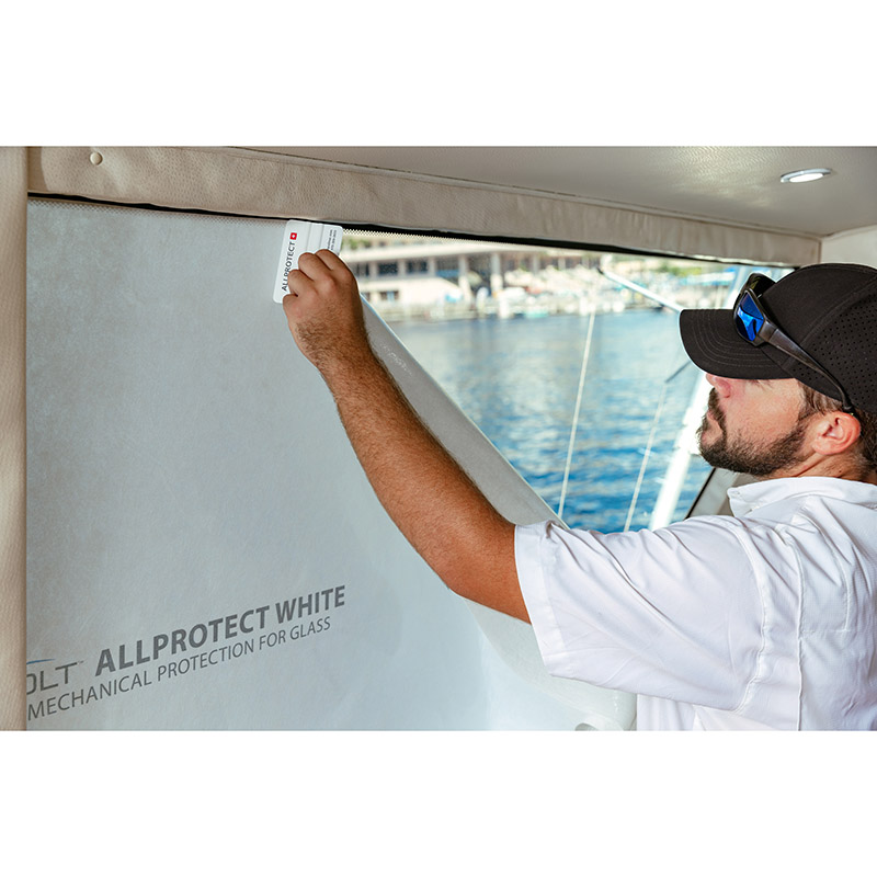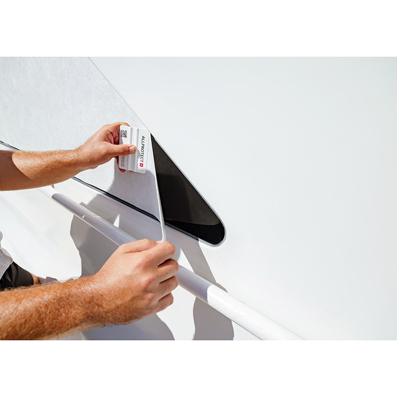 This newest product offers vertical application in a thinner, more flexible padded non-woven with the same self-stick backing as ALLProtectTM Original. It is impermeable, durable, reusable surface protection that offers more flexibility to fold around edges and allows light to pass through when applied to windows or glass. |