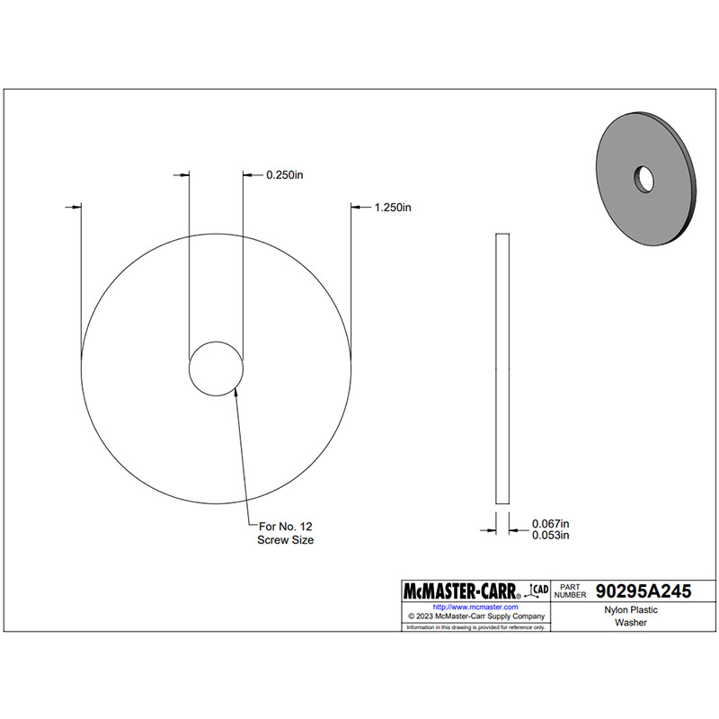 Nylon Plastic Washer for Number 12 Screw Size, 0.25" ID, 1.25" OD, Green.