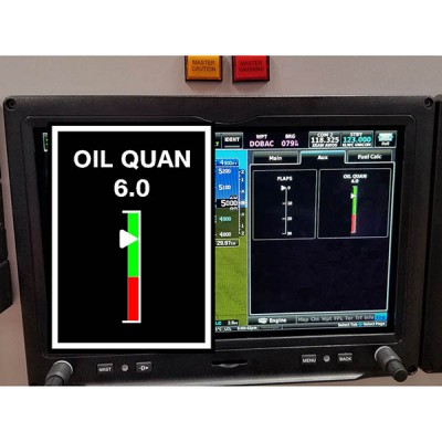 This oil quantity sensor with its (required) electronics package (OSE-1) will give the pilot a real time oil quantity while in flight or on the ground. This system is not meant to replace any other traditional methods of checking oil quantity. It is a new device that the pilot of a small aircraft can use in flight that he or she never had before. It will also measure oil sump temperature, which is often higher than the engine oil temperature, and often rises faster. The electronics enclosure features two analog outputs ( 0 to 5V), one for oil quantity and the other for oil temperature. It also features a four digital output alarms (open collector type) for sensor out of calibration, oil level warning, oil level caution, and over oil temperature. You may program the alarm trigger values for those outputs and choose a scaling for both analog outputs. The electronics package is required as all sensors are passive devices. Presently, we have two types of oil sensors available, one for standard Lycoming engine oil pan fittings (1/2NPT) and the other for standard Continental engine oil pan fittings (5/8-18). The sensor will fit quite a number of engines, oil pans, oil sumps and oil containers. Presently, the length of sensors are custom built. The sensor's length must be determined by the customer at the time of purchase. Later, we plan to build them up ahead of time as we create a database of standard lengths ordered. Sensors with other fitting types may already be in our design schedule. Please check with us if you require a different fitting type. PLEASE READ below before ordering! Installing the Oil Quantity Sensor (from the TOP or Up-Side-Down) You may install the sensor from the top side of your oil pan or oil container but, . . please be aware of two situations: First, please understand that the temperature sensor is mounted in the base of the sensor. This being the case, it will not function properly because it will not be immersed in the oil unless the oil tank is always full. (For the future, we are working on a design that may be used if you desire to mount this sensor from the oil container top.) Second, also be aware that when you calibrate the oil quantity sensor amounts by adding your quarts of oil, the sensor may not sense your lowest oil level. If this is the case, your sensor tip may not extend into the oil at the very bottom of your oil pan when adding your first quart. The oil level must be between the sensor base and the sensor tip for the first "quantity" of oil. If this is the case, you might try adding two quarts as your "increment" instead of a one quart increment. This may allow you to get the oil level beyond the tip of the inverted sensor. It is up to the installer/customer to determine where your lowest oil level is for your installation for an inverted sensor installation. Will this Oil Sensor Fit? We would like to make certain that the sensor that you order will fit your aircraft. If you order one of our standard available sensors, and never had oil in it, or scars from installation, we may be able to refund your money if you make a mistake in ordering. However, if you order a custom made sensor and find that it does not fit, we will not be able to refund your money for the sensor portion of your order. In order to be sure of the fit, please download and read the following document. (Will this Sensor Fit?) The two, mostly green pictures of an oil quan. gauge and oil temp. gauge do not come with this oil sensor. These are just two of many screens available on our model AG6. Customers frequently purchase our oil quan. gauge and oil temp. gauge with the oil sensor. You can find these Here IF ORDERING, PLEASE preview the manual, the document titled "Will this sensor fit" and fill out the form below and send it to us. (Oil Quan Sensor Preorder Form) |