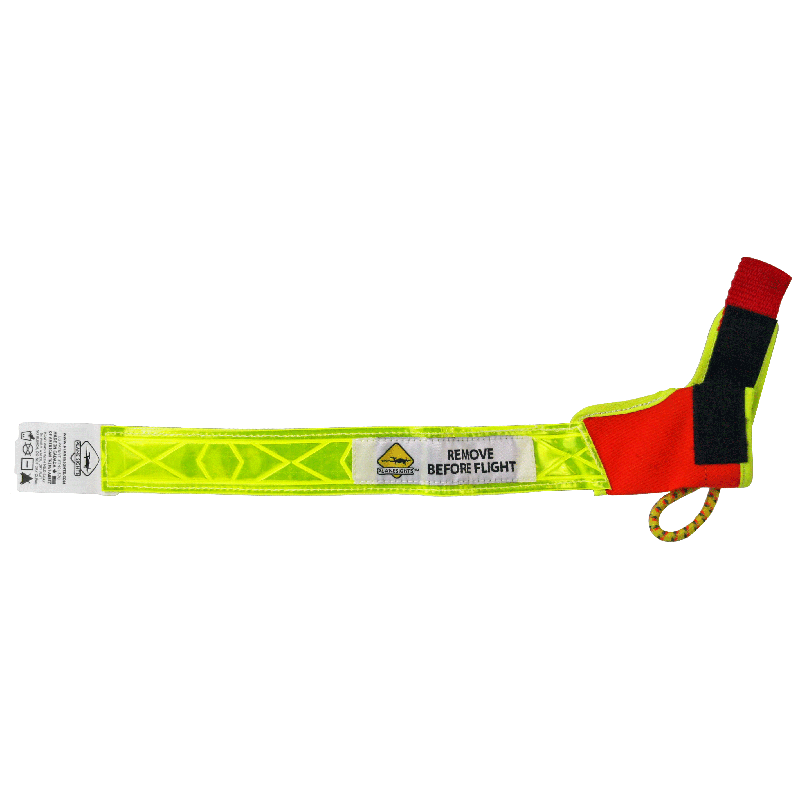 Probe cover with flag, bright orange and yellow in color.
