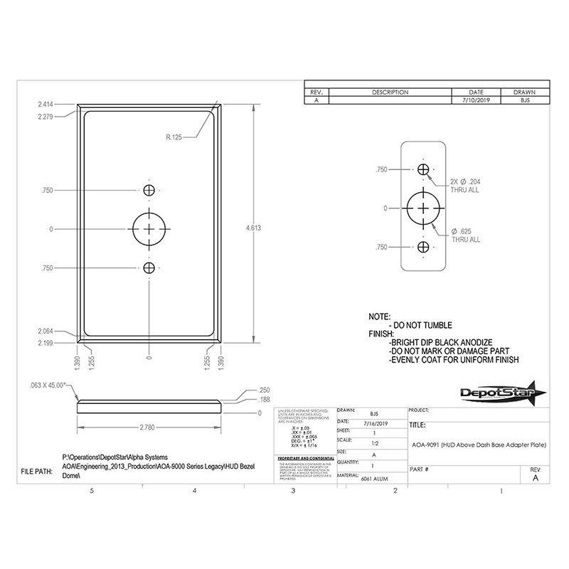 HUD Base Adaptor Plate Dimensions | L: 4.613", W: 2.780" | |