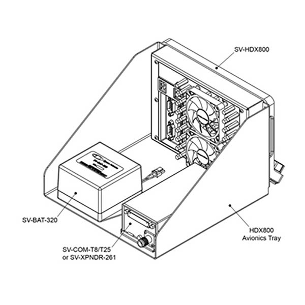 The Module Mounting Tray for SV-HDX800 simplifies both the new and retrofit installations by providing the means for mounting the HDX800 display and its backup battery. In addition, it provides mounts for either a SkyView COM transceiver, or a SkyView Transponder.