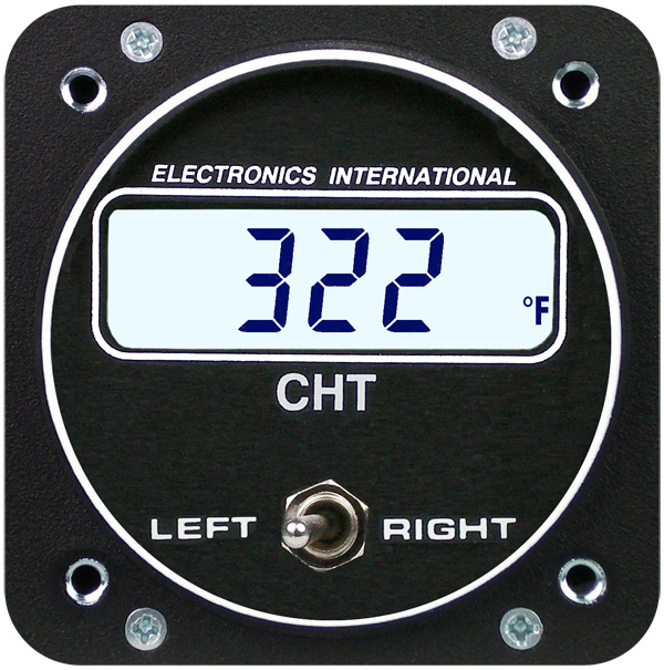 The line of Electronics International digital instruments offers precise readings at exceptional prices. All gauges are accurate to 1% and are FAA-approved under STC No.1626NM. Furnished complete with all probes and leads. C-2: Dual CHT Instrument, 2 1/4" Mount, 2.5" Depth, 24 Oz. Kit, STCd, TSOd, PMAd, 1 Degree Resolution, Accurate within 1/2%, Viewable in direct sunlight, Backlit, Operates from 7.5 to 35 volts at .1 amp.