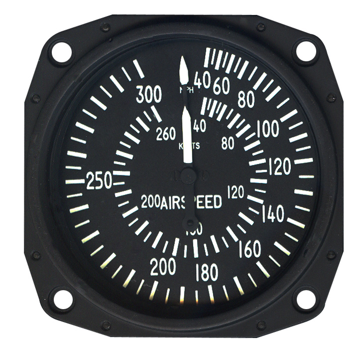 Falcon Dual Dial Airspeed Indicator 40-300 mph / 40-260 Knots