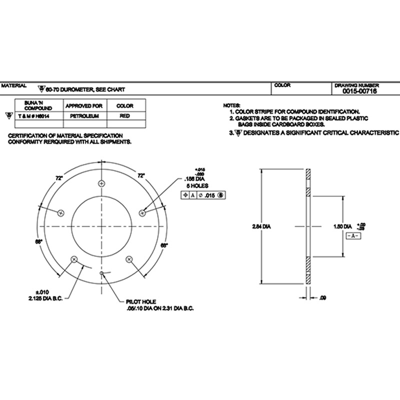 Silicone gasket used with Rochester 8341-3 Fuel Sender. Dimensions OD 2-13/16" | ID 1-1/2" | Thickness 3/32" |
