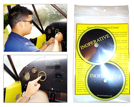 The instrument cover is a plastic disk approximately 2 3/4” in diameter and 1/16” thick. By use of the attached suction cup, the cover will mask the face of most general aviation flight instruments. It is useful in many training situations one of which is partial panel work. As a safety aid, the cover can be used to mask an instrument when it is non-functional, as is required by Regulations. Each package has two covers. |