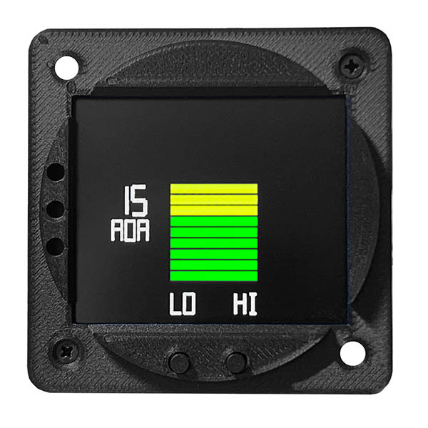 The Radiant Angle of Attack Sensor & Display System includes vane, sensor, LCD RADIANT color Display, and aural alert output, which sounds when angle is in the red.