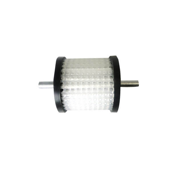 Rapco RA1J10-1 Central Air Filter Assembly. Pleated filter, screen with rubber ends, two 3/8” hose fittings, overall length 5-1/4” x 3” diameter. Complete filter assembly replacement for vacuum systems.