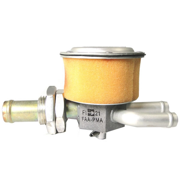 Constructed of lightweight aluminum. Large air passages minimize the pressure drop through the valve. Valve chatter is virtually eliminated by pneumatically balancing the regulating diaphragm. Simple, but effective polyurethane garter filter protects the air pump and may be easily replaced. Beaded hose fittings simplify installation and eliminate expensive AN fittings which unnecessarily restrict air flow. |