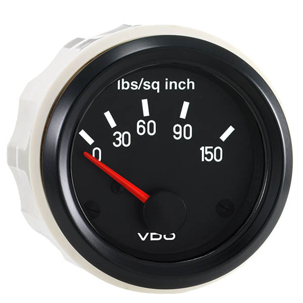 150 PSI Oil Pressure Gauge, Use with VDO Sender Cockpit 150 PSI Oil Pressure Gauge, Use with VDO Sender Note: Bulk unit - Unit only. Instructions and packaging not included. |