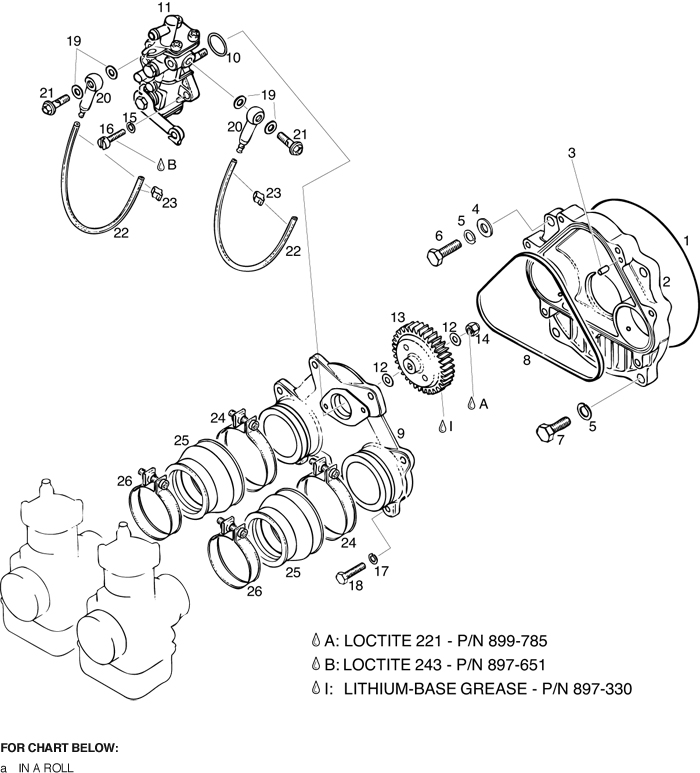 Rotax 618 ul engine rotary valve cover, oil pump drive, oil pump parts. Explanations of symbols and statements in part number charts: