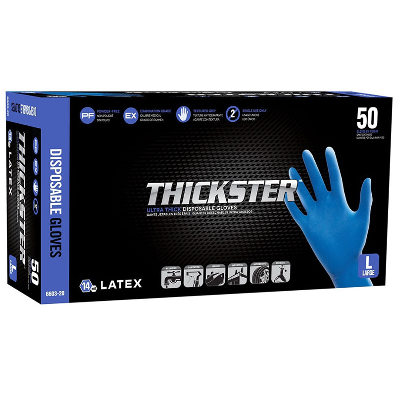 | The Thickster glove is ideal for your next mechanic, paint, or clean-up task. Made with an ultra-tough 14 mil latex, this glove is powder-free yet soft and flexible. Constructed with a strong puncture and abrasion resistant, this glove also provides extended length protection with its 12-inch length. Textured for a superior grip, this exam grade glove will get through your most toughest task. |