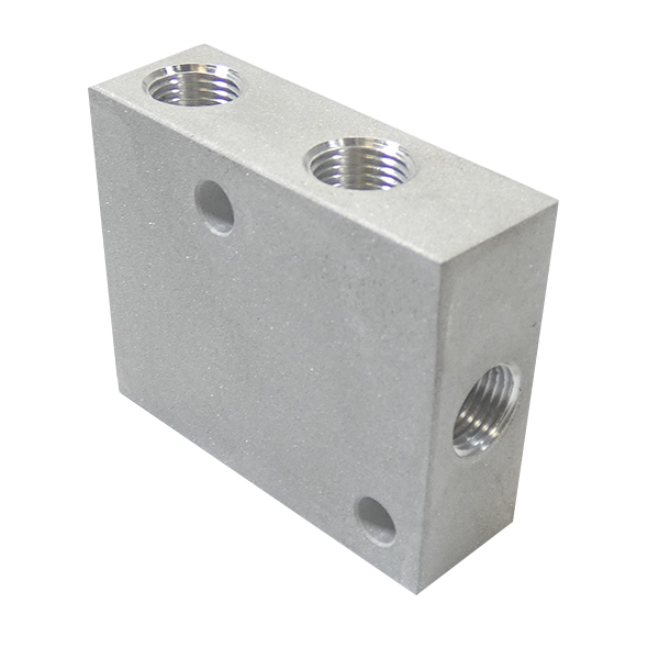Our aluminum manifold fittings are a bolt-on design with taper pipe threads. These fittings are designed to provide a convenient means of plumbing multiple hoses from and/or to one source with the fitting being bolted to a supporting structure. This design will eliminate Adel clamps at the juncture of the hoses and eliminate additional tee type fittings when more than two hoses are to be connected to one source. Applications include brake reservoir lines, static system, suction systems, fuel systems, air line pigs, smoke systems, and more. Not for use on oxygen systems or pressures over 150 psi. Basic part number on all fittings is 04-00XXX, complete the part number by filling in the last 3 digits after selecting the fitting you need according to the details below. Example: 04 -00102. First Code Number - Determines the style of the fitting. -1: One port in the end with two ports out, 90° cross drilled with one port per side. 3 ports total. Two Mounting Holes. -2: One port in the end with four ports out, 90° cross drilled with two ports per side. 5 ports total. Two Mounting Holes. -3: One port in the end with six ports out, 90° cross drilled with three ports per side. 7 ports total. Four Mounting Holes. -4: One port in the end with eight ports out, 90° cross drilled with four ports per side. 9 ports total. Four Mounting Holes. -5: One port in the end with four ports out, 90° drilling with four ports on one side only. 5 ports total. Two Mounting Holes. Second Code Number - Determines the style of porting. -0: All the ports are the same. -1: Inlet port is one size larger than outlet ports. -2: Inlet port is two sizes larger than outlet ports. Third Code Number - Determines the inlet port size. -2: 1/8-27 taper pipe thread (NPT) -4: 1/4-18 taper pipe thread (NPT) -6: 3/8-18 taper pipe thread (NPT) -8: 1/2-14 taper pipe thread (NPT) In the example above - 04 -00102, this would be a 1/8 NPT inlet with two outlets of the same size. Example - 04 -00326, this would have a 3/8 NPT inlet with six 1/8 NPT outlets. |