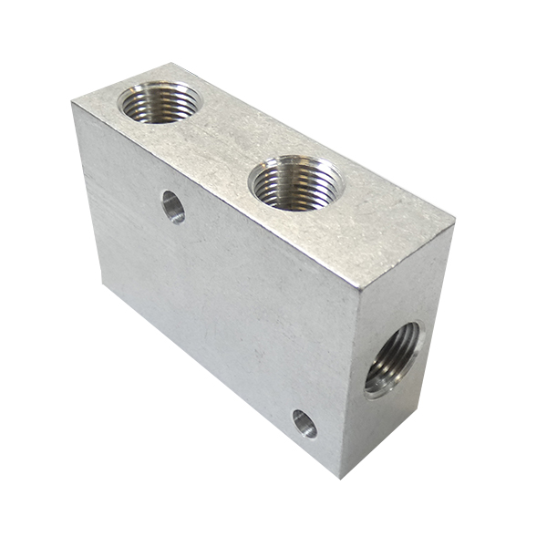 Our aluminum manifold fittings are a bolt-on design with taper pipe threads. These fittings are designed to provide a convenient means of plumbing multiple hoses from and/or to one source with the fitting being bolted to a supporting structure. This design will eliminate Adel clamps at the juncture of the hoses and eliminate additional tee type fittings when more than two hoses are to be connected to one source. Applications include brake reservoir lines, static system, suction systems, fuel systems, air line pigs, smoke systems, and more. Not for use on oxygen systems or pressures over 150 psi. Basic part number on all fittings is 04-00XXX, complete the part number by filling in the last 3 digits after selecting the fitting you need according to the details below. Example: 04 -00102. First Code Number - Determines the style of the fitting. -1: One port in the end with two ports out, 90° cross drilled with one port per side. 3 ports total. Two Mounting Holes. -2: One port in the end with four ports out, 90° cross drilled with two ports per side. 5 ports total. Two Mounting Holes. -3: One port in the end with six ports out, 90° cross drilled with three ports per side. 7 ports total. Four Mounting Holes. -4: One port in the end with eight ports out, 90° cross drilled with four ports per side. 9 ports total. Four Mounting Holes. -5: One port in the end with four ports out, 90° drilling with four ports on one side only. 5 ports total. Two Mounting Holes. Second Code Number - Determines the style of porting. -0: All the ports are the same. -1: Inlet port is one size larger than outlet ports. -2: Inlet port is two sizes larger than outlet ports. Third Code Number - Determines the inlet port size. -2: 1/8-27 taper pipe thread (NPT) -4: 1/4-18 taper pipe thread (NPT) -6: 3/8-18 taper pipe thread (NPT) -8: 1/2-14 taper pipe thread (NPT) In the example above - 04 -00102, this would be a 1/8 NPT inlet with two outlets of the same size. Example - 04 -00326, this would have a 3/8 NPT inlet with six 1/8 NPT outlets. |
