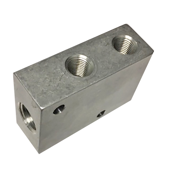 -5: One port in the end with four ports out, 90° drilling with four ports on one side only. 5 ports total. Two Mounting Holes.