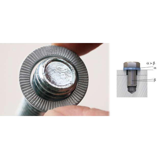 The Nord-LockŪ system consists of a pair of washers with a wedge-locking action, which is a unique method that uses tension instead of friction. It is a high quality product with documented success in many industries worldwide, and is the washer utilized by a broad range of propeller manufacturers. Nord-Lock wedge lock washers have been rigorously tested and approved by independent institutes as well as certification authorities. Nord-Lock wedge lock washers are used in numerous industries such as aviation, energy, transportation, offshore, mining and quarrying, construction and bridge building, manufacturing and processing, ship building, forestry and agriculture, heavy vehicles, and military. Our washers are approved by several industry standards and specified by numerous international companies. Over the operational life cycle, Nord-Lock wedge lock washers give increased operational reliability and lower maintenance costs while significantly reducing the risks of production stops, accidents and warranty claims. All Nord-Lock washers manufactured are laser marked with the Nord-Lock brand name, control number and a type code for increased traceability and to facilitate authentication. Note: SP Washers feature an Enlarged O.D. for use on large / slotted holes, painted / sensitive surfaces, or soft materials. |