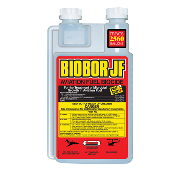 | Biobor JF® has been used for nearly 30 years as a fuel additive for diesel and jet fuel. Jet engine and diesel engine manufacturers have come to recommend this outstanding additive in many of their operating manuals as the preferred, industry standard fuel additive for eliminating Hydrocarbon Utilizing Micro-Organisms (HUM Bugs) in fuel tanks. Biobor JF® is US Coast Guard Certified and is the only diesel additive that has been given a military MIL Spec number. |