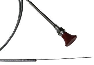 (Solid Wire End) Ratchet design provides detented positions under vibration conditions. Simple push-pull operation. Has .050" dia. stainless steel wire Core in flexible metal casing with polyethylene liner. Max temp rating 200-250 degrees.