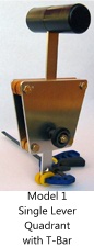 These quality quadrants have been in use for over 35 years in a wide variety of experimental and ultralight aircraft. All quadrants are made with AN standard hardware and aircraft-quality 6061-T6 or 2024-T3 Aluminum. All sizes and models can be utilized for a side mount, center mount, or dual-control hookup. Can be used in Pitts, Cub, Aeronca, Bakeng Deuce, Horizon 2, Dakota Hawk, Quicksilver, Mini Max, Dragonfly, X-Air, etc. If you have an aircraft, we have a quadrant that will fit your needs. Model #1 -This external reversing quadrant is our most popular for dual-control hookup. It can also be used as a single hookup. Available in S-series only. One, two or three levers. Friction or non-friction.