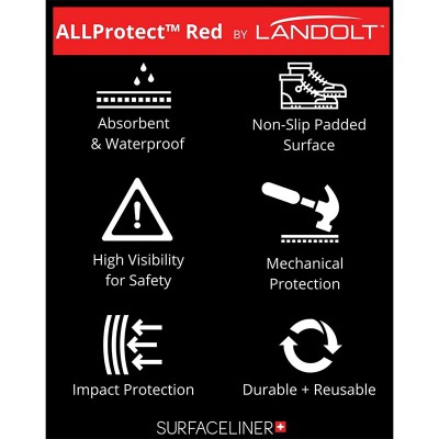 ALLProtect™ RED is a highly visible protection solution designed to improve the safety and preventative risk standards on any job site. This reusable covering is padded, highly absorbent, and extremely durable for heavy-traffic areas on floors, stairs, and elevated surfaces. The self-stick backing allows for a quick, easy, one-man application, an exact, edge-to-edge fit on vertical surfaces and stairs, and a non-slip work surface even when wet or greasy. |